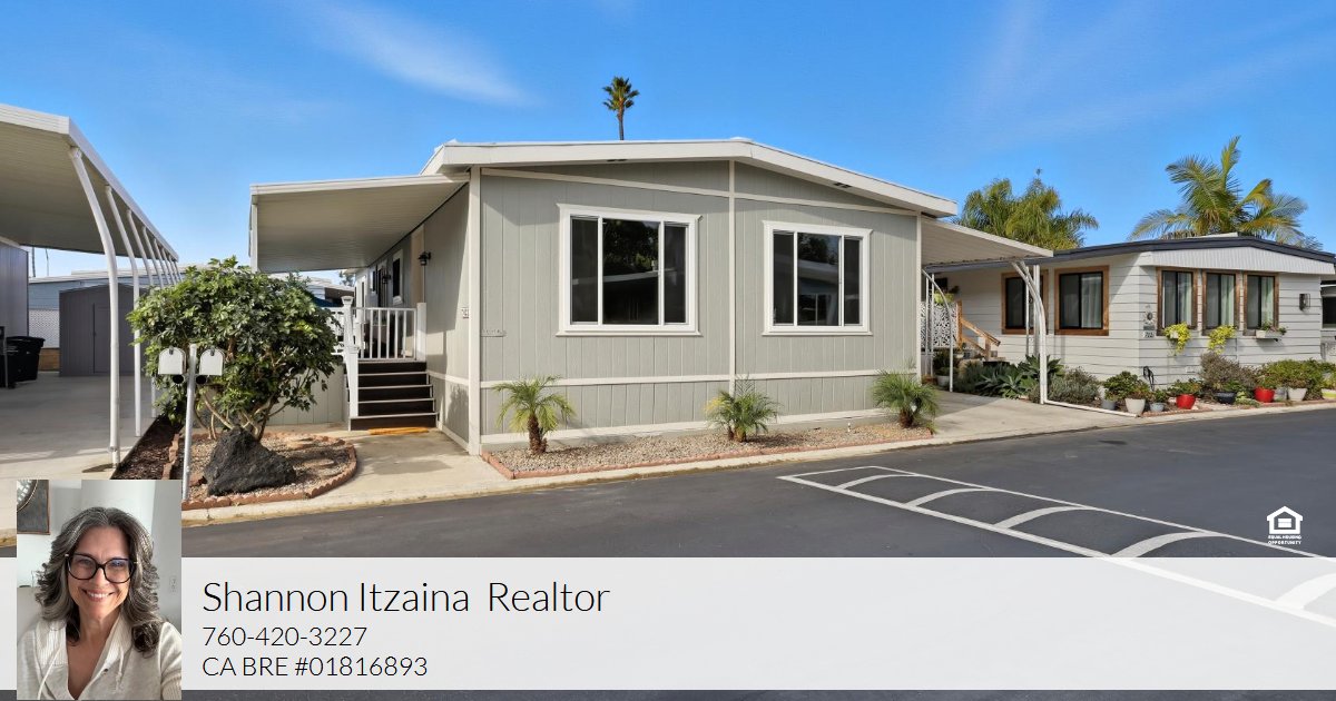 This Modern Coastal Home blends contemporary comforts and aesthetics with a coastal, relaxed atmosphere. Soothing grey colors, large open spaces, solid surface flooring throughout. Well-appointed kitchen, with ample work space and an expansive island, has newer appliances w/5 burner gas stove. Primary bath is thoughtfully modernized w/double vanity & a wall to wall shower! 24'X8' deck perfect for entertaining and spacious, pet friendly, fully fenced lower yard w/artificial turf. **No Property Taxes** Location is a 10 minute walk to South Carlsbad State Beach! LARGE strip mall offers EVERY POSSIBLE amenity from shopping to services all just a walk across the street! Lakeshore Gardens has a multitude of community areas that are upscale, assessible and beautiful!